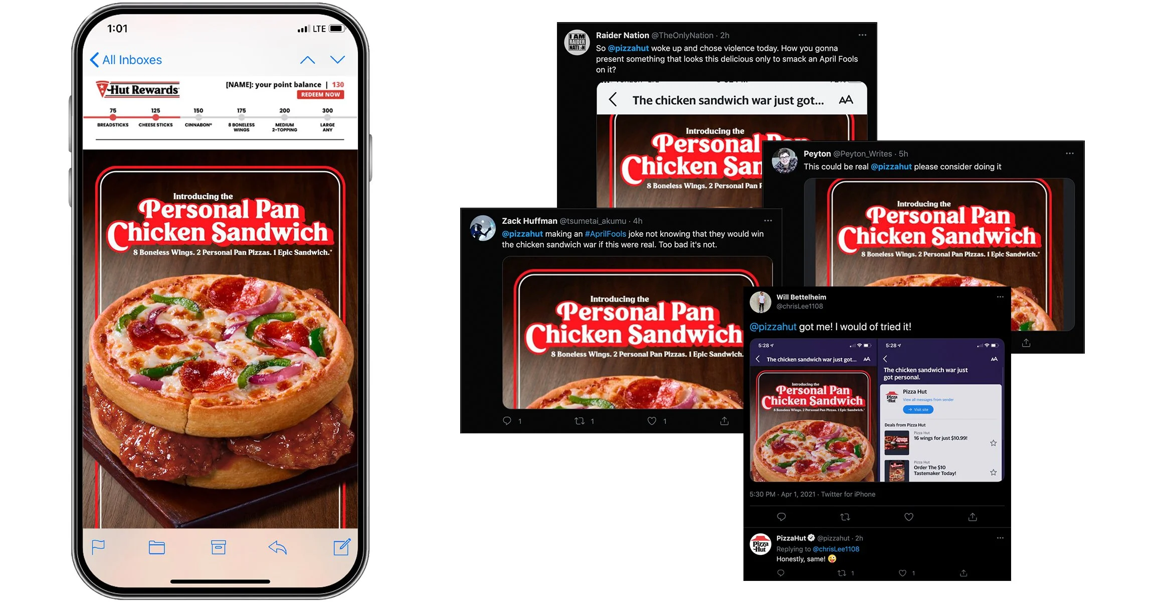 On April 1st, thousands of Pizza Hut fans received an email about a fake, over-the-top new product–the Personal Pan Chicken Sandwich. But unlike other branded April Fool’s jokes, fans could actually build this for themselves on pizzahut.com.